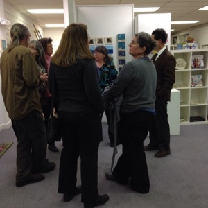 We had a blast reading at artstream in our most recent ekphrastic endeavor. John Michael Albert, Mark DeCarteret, S Stephanie and I read. I am the shrimp in back. Thanks to Susan Schwake for the picture.